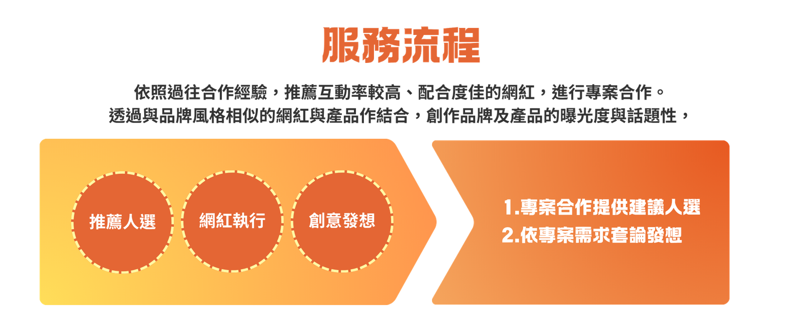 我們不只是服務提供者,更是品牌成長路上的策略夥伴,用心理解每個品牌的獨特性,量身打造最適合的行銷方案。